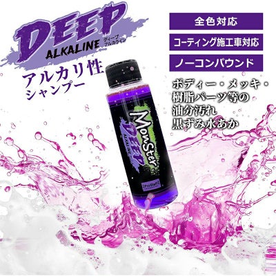 アルカリ性シャンプー「ディープアルカライン」は油汚れ、水アカ・くすみを洗浄して手軽に脱脂。表面の油分を落として酸性汚れを落ちやすい状態にします。