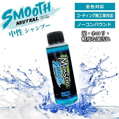 中性シャンプー「スムースニュートラル」は仕上げ洗浄に最適。濃密泡で汚れをまとめて洗浄し、アルカリ性・酸性の残留液もしっかりと落とします。