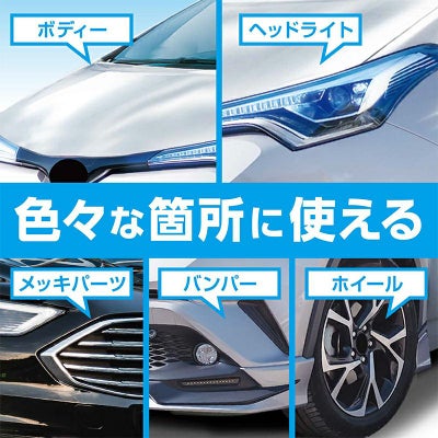 車のボディーだけでなく、ヘッドライト・メッキパーツ・バンパー・ホイールなど様々な箇所に使用可能です。(布地・レザーには使用できません)
