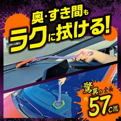 無理に腕を伸ばさないと届かない、傾斜がキツくて拭きにくい内窓や、ダッシュボードの手前から奥の汚れまで一掃することができます。
