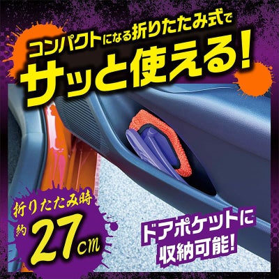 ヘッドと柄が一体となった折りたたみ式でコンパクトになるため、ドアポケット等に収納しやすく、内窓やダッシュボードの汚れが気になった時にサッと取り出してすぐ使うことができます。