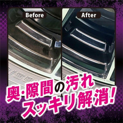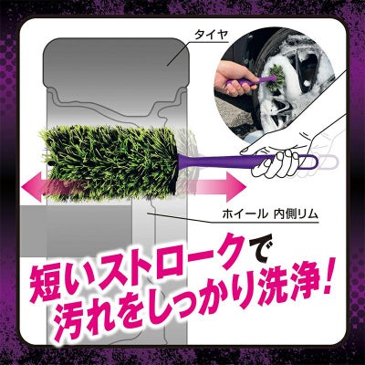 柄が長くブラシの範囲を短くすることでホイールのリムの内側の汚れを前後させ、短いストローク作業で集中して汚れを落とせます。