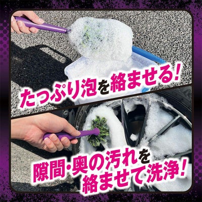 柄が長くブラシがホイールの奥や隙間に入り込み汚れを落とします。