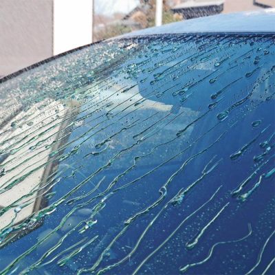 ●雨をはじくだけでなく、油膜や汚れ、霜や雪などの固着を防ぎます。