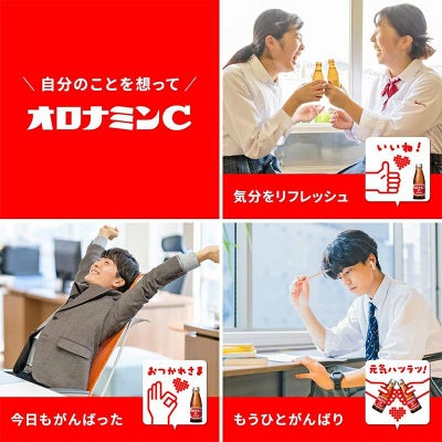 オロナミンCドリンクにはカラダに必要な5大栄養素のひとつ、ビタミン群(ビタミンC、B2、B6など)が含まれています。