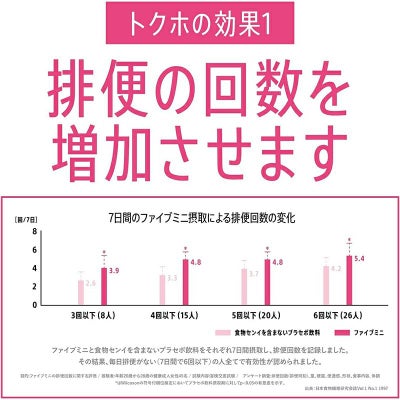 許可表示:ファイブミニは、食生活で不足しがちな食物繊維を手軽にとり、おなかの調子を整える食物繊維飲料です。 トクホの効果はこちら