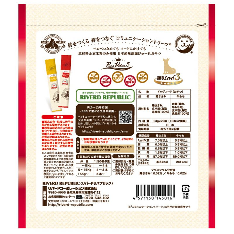 他の画像を見る リバードリパブリック いぬぴゅーれ 無添加ピュア PureValue5 鶏ささみ 牛もも 13g×20本 いぬぴゅ~れ メール便対応(1個まで) 倉庫No0001 メール便 当店特別価格 ¥ 950 税込 詳細を見る お気に入りに登録する