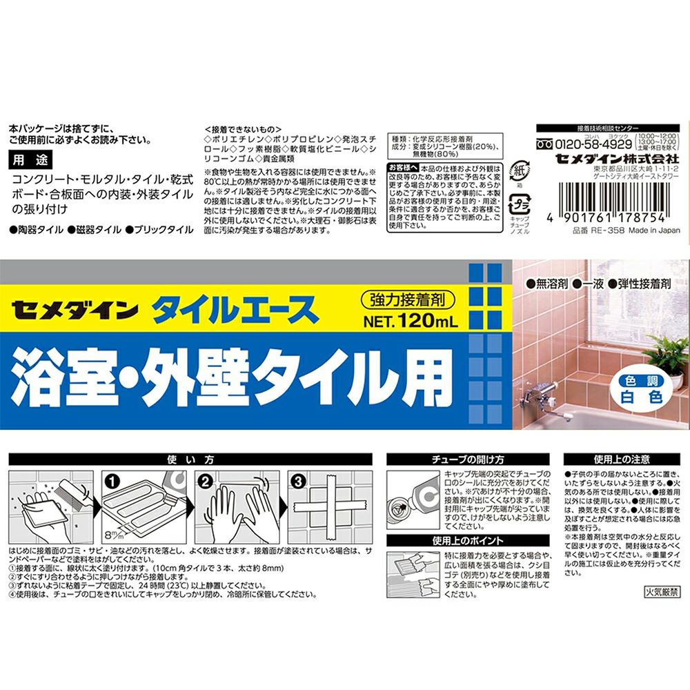 セメダイン 接着剤 タイルエース 浴室・外壁 タイル用 120ml RE-358