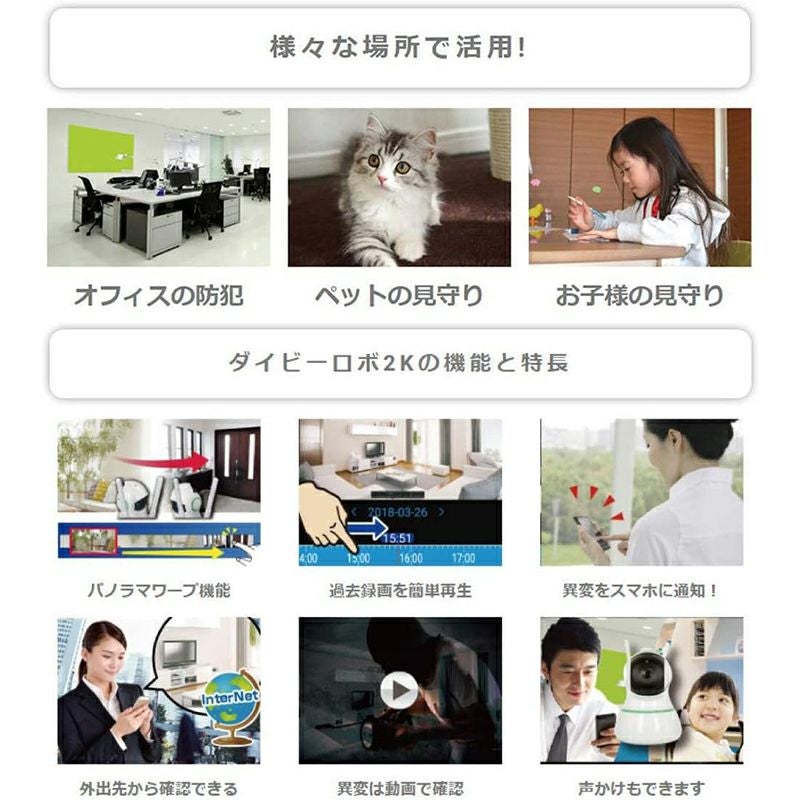 他の画像を見る ダイトク グランシールド 防犯カメラ Dive-y Robo 2K ホワイト 見守りカメラ GS-DVY200DTK 送料無料 当店特別価格 ¥ 9,800 税込 詳細を見る お気に入りに登録する