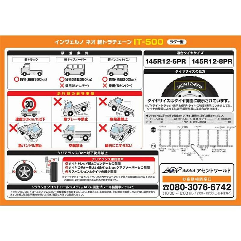 他の画像を見る アセントワールド インヴェルノ ネオ 軽トラチェーン ラダー型 軽トラック専用 タイヤチェーン IT-500 送料無料 当店特別価格 ¥ 13,500 税込 詳細を見る お気に入りに登録する