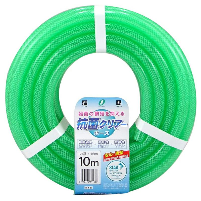 三洋化成 抗菌 クリアホース グリーン 15mm×10m 耐圧 日本製 KC-15195L 10G