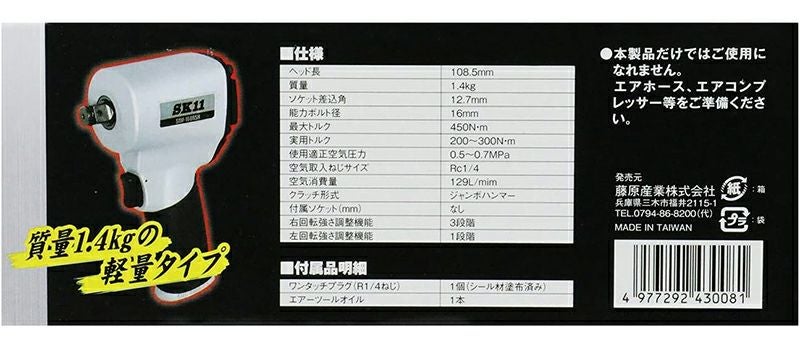 SK11 ショート エアーインパクトレンチ SIW-1600SH