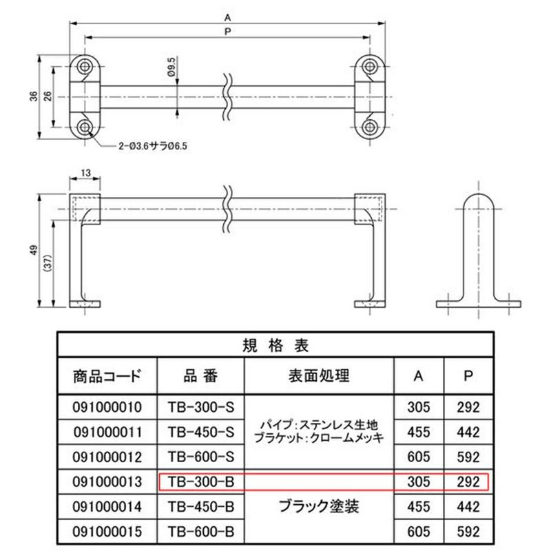 水上 FIRST PRO ステンレス タオルバー ブラック色 TB-300-B