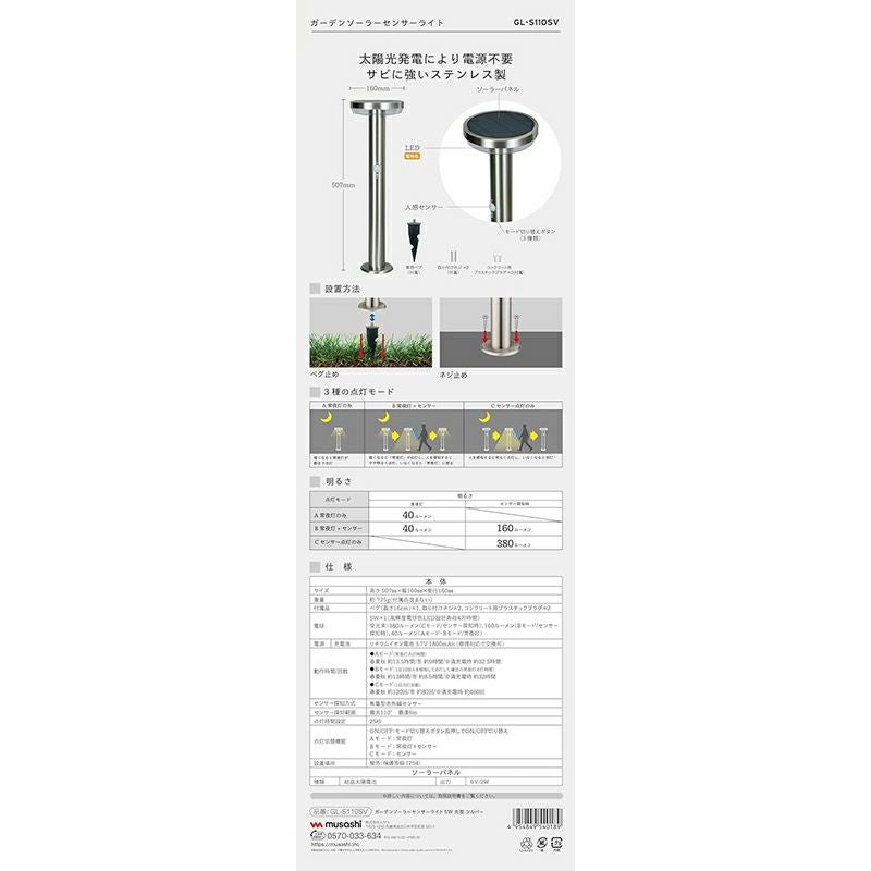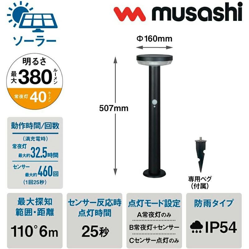 他の画像を見る ムサシ ガーデンソーラー センサーライト 7.5W 丸型 ブラック 防雨 MUSASHI GL-S130BK 送料無料 当店特別価格 ¥ 7,380 税込 詳細を見る お気に入りに登録する