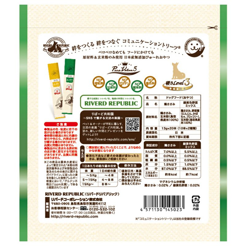 他の画像を見る リバードリパブリック いぬぴゅーれ 無添加ピュア PureValue5 鶏ささみ 緑黄色野菜ミックス 13g×20本 いぬぴゅ~れ メール便対応(1個まで) 倉庫No0001 メール便 当店特別価格 ¥ 950 税込 詳細を見る お気に入りに登録する