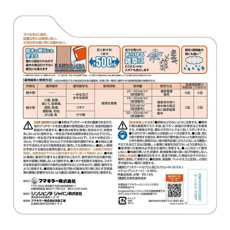 他の画像を見る フマキラー 除草剤 カダン 除草王 ザッソージエース 2L シャワータイプ 1個 根まで枯らす 液体 【ニトリルゴム手袋プレゼント 】 当店特別価格 ¥ 1,180 税込 カートに入れる お気に入りに登録する