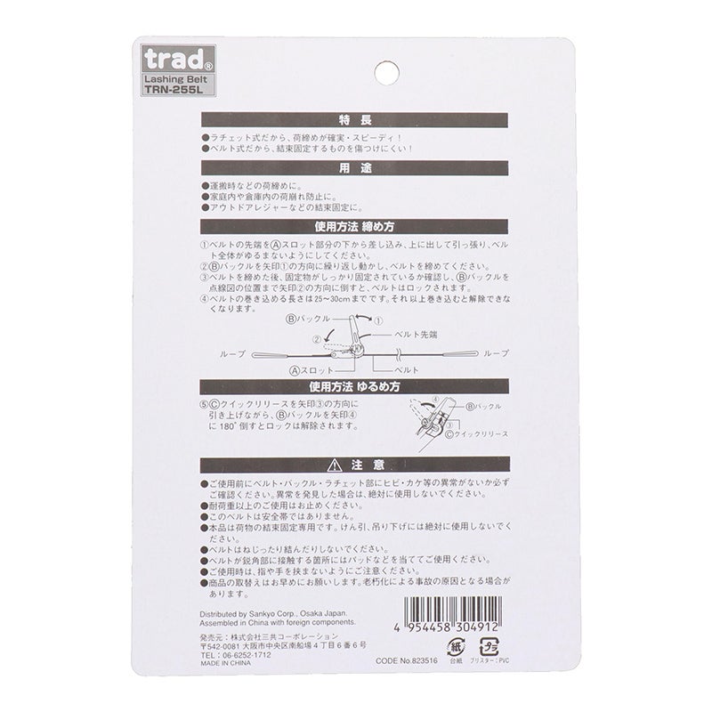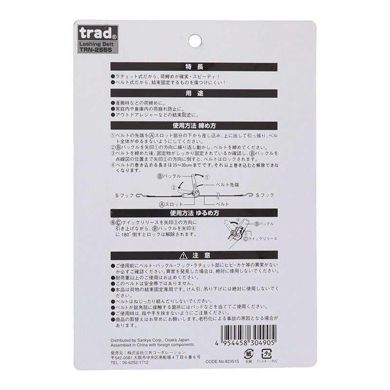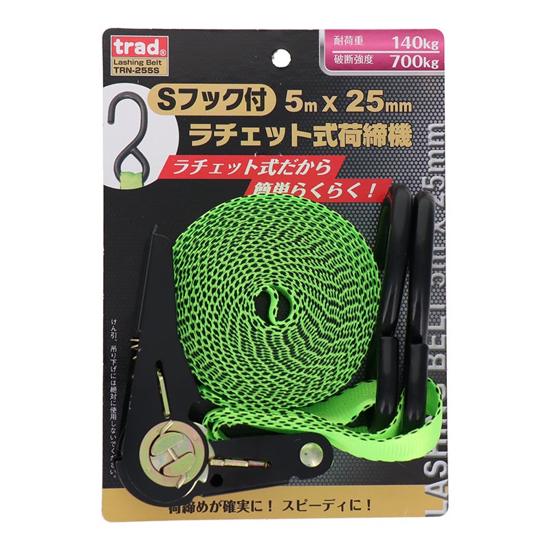 三共コーポレーション trad ラチェット式荷締ベルト Sフック付 5m×25mm TRN-255S